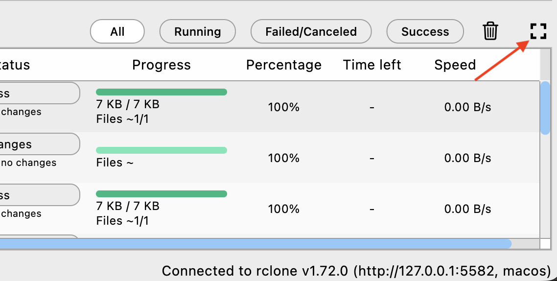 In the center of that strip, underneath the gap between the two windows, there’s a small dark-grey dot. I can click on that dot and drag it up and down to make the transfer/log window bigger.