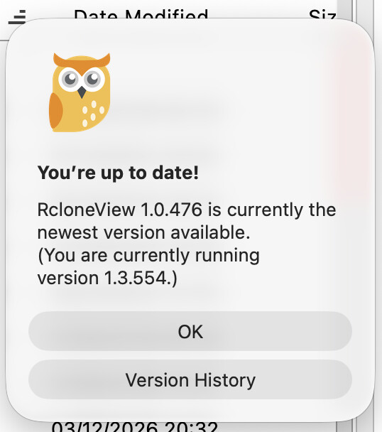Self-explanatory. Informs that latest version is 1.0.476, when I’m running 1.3.554, the actual latest version for MacOS as of today.